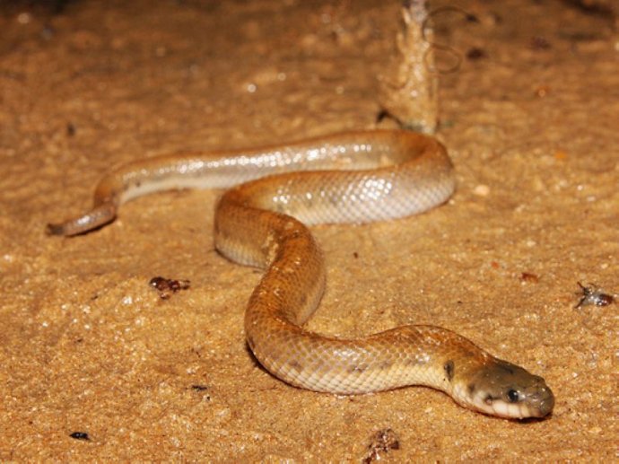 钓鱼蛇蛇长相相当奇特,为后沟牙蛇种,具有轻微毒性。其口鼻部的肉质增生物可用来引诱於及小虾上门,然后迅速张口囓咬并注入毒液。钓鱼蛇可以连续潜水6分钟再换气;以埋入泥中的方式度过乾季。
