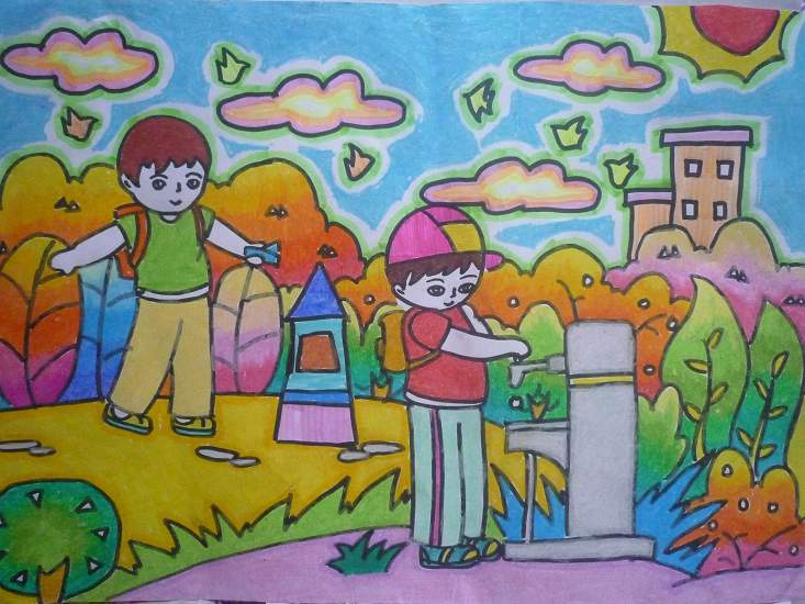 以下是学识网从互联网收集来的和谐校园绘画作品图片。